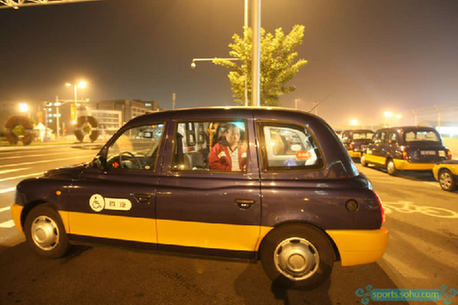 A customized taxi waits in a parking lot outside a competition venue for disabled passengers on September 7, 2008.[Sohu.com]