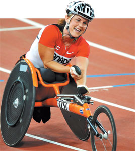 Canada's Diane Roy wins the gold medal in the women's 5,000m T54 at the Bird's Nest yesterday. [Xinhua]