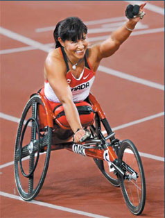 At the 2004 Athens Olympics, where wheelchair racing was an exhibition sport, she won the 800m race before capping that off with five gold at the Paralympics shortly after.