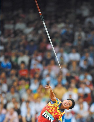 China's Wu Qing sets a world record of 28.84m on the way to gold in the women's javelin throw F35-38. [Xinhua]