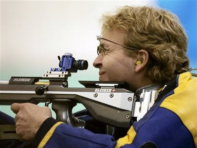 On Monday, the shooter who raked in all four gold he was after in Athens started his gold spree by winning the men's 10-meter air rifle standing competition, improving both the qualification record and the total with 596 and 700.5 points.