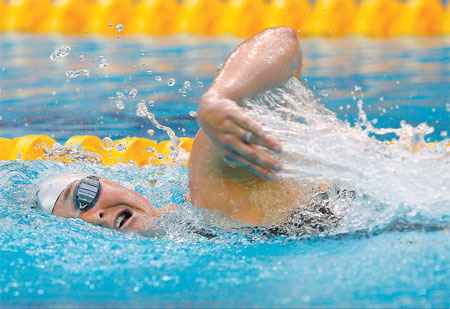 Melissa Stockwell competes in the qualifying for the 400m freestyle S9 finals at Beijing Paralympic Games September 12, 2008.