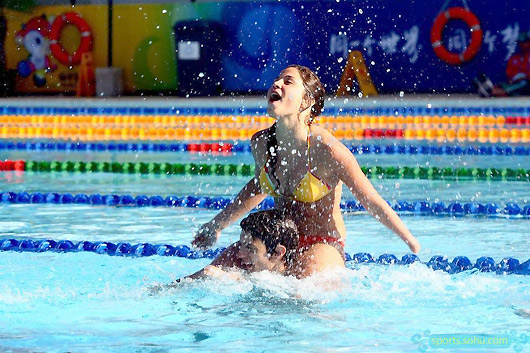 Two Paralympic athletes from Argentina play with water at the Paralympic Village in Beijing, September 12, 2008. [sohu.com