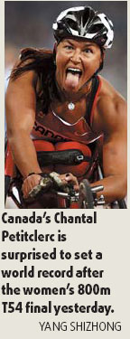 Petitclerc has won all four events she has contested at her fifth Paralympics, winning the 400 and 100 titles before setting two world records in her latest victories and now looking to repeat her Athens performance with a fifth gold in the 1,500.