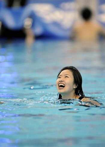 A girl jumps into the pool in the National Aquatics Center, or the Water Cube, in Beijing, China, Sept. 15, 2008. The "Water Cube" finished hosting all its swimming events on September 15, 2008. [Sohu.com]