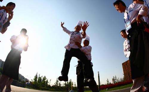 Paralympic chefs pose for a group photo in joy in the Paralympic Village in Beijing September 16, 2008. The Beijing 2008 Paralympic Games will conclude on Wednesday. [Sohu.com]