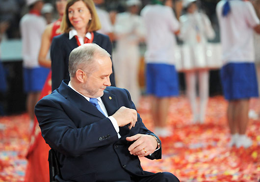 International Paralympic Committee (IPC) President Philip Cravenpockets colorful petals in the sky floating down from the rim of the National Stadium "Bird's Nest"September 17,2008.[Xinhua]