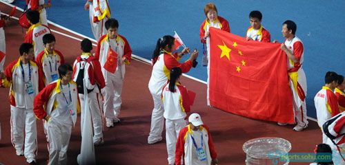 Team China walks into the Bird's Nest to attend the Paralympic closing ceremony in Beijing on September 17, 2008. [sohu.com]