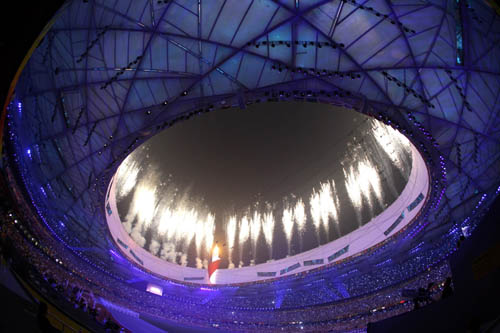 Fireworks are displayed in the sky during the Beijing 2008 Paralympic Games closing ceremony held in the National Stadium, or the Bird's Nest, Beijing, capital of China, Sept. 17, 2008. The closing ceremony kicked off at 8 pm sharp on Wednesday. [Xinhua]