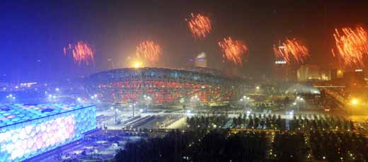 Fireworks are displayed in the sky during the Beijing 2008 Paralympic Games closing ceremony held in the National Stadium, or the Bird's Nest, Beijing, capital of China, Sept. 17, 2008. The closing ceremony kicked off at 8 pm sharp on Wednesday. [Xinhua]