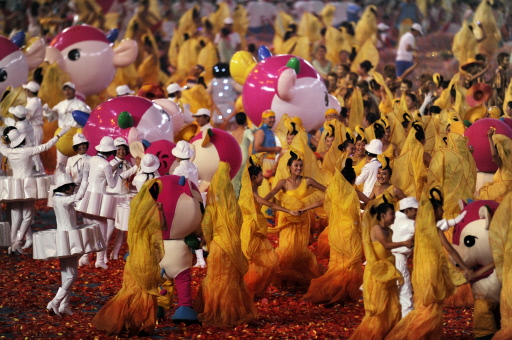 | Dancers and mascots enjoy themselves during the closing ceremony for the 2008 Beijing Paralympic Games in the Chinese capital on September 17, 2008. [Agencies] |