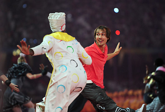 An eight-minute performance prepared by London, host city of the 2012 Paralympics, stages in the National Stadium in north Beijing at the closing ceremony of the Beijing 2008 Paralympics September 17, 2008.[Xinhua]