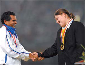 Whang, a South Korean doctor after whom the awards are named, was present at the Bird's Nest to present the eponymous honor to South African amputee swimmer Natalie du Toit and Panama's Paralympic athletic veteran Said Gomez.