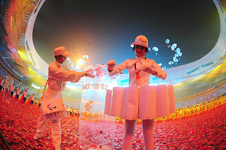 Beijing, host of the 2008 Paralympic Games, bid goodbye to 12 exciting days of competition with a colorful invocation of autumn and a letter dedicated to the 2012 London Games during Wednesday's Closing Ceremony.