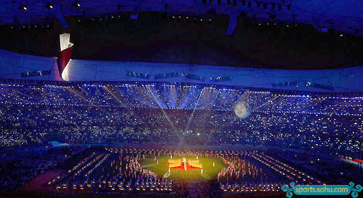 Artists perform in the National Stadium after the Paralympic flame went out during the closing ceremony of the Beijing Paralympic Games, September 17, 2008. [Sohu.com]