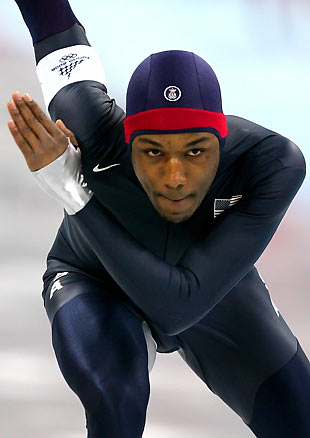 Shani Davis of the U.S. skates to win the gold in the men's speed skating 1000 metres race at the Torino 2006 Winter Olympic Games in Turin, Italy February 18, 2006. [Reuters]