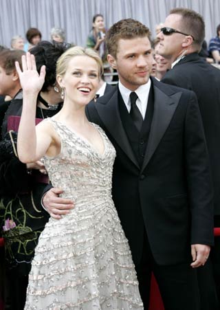 nominee for "Walk the Line," arrives with her husband Ryan Philippe at the