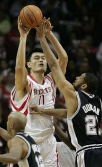 Houston Rockets' Yao Ming (11), of China, passes the ball as San