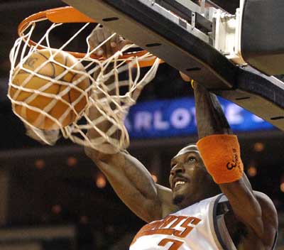 Charlotte Bobcats forward Gerald Wallace dunks two of his 12
