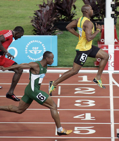 men's 100m final at the Commonwealth Games in Melbourne March 20, 2006. Silver