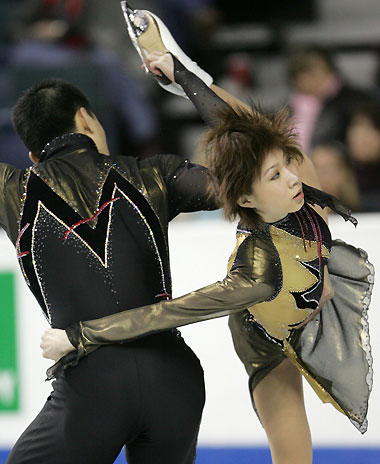 China's Zhang Dan (R) and Zhang Hao perform at the World Figure Skating Championships in Calgary, Canada, March 20, 2006. [Reuters]