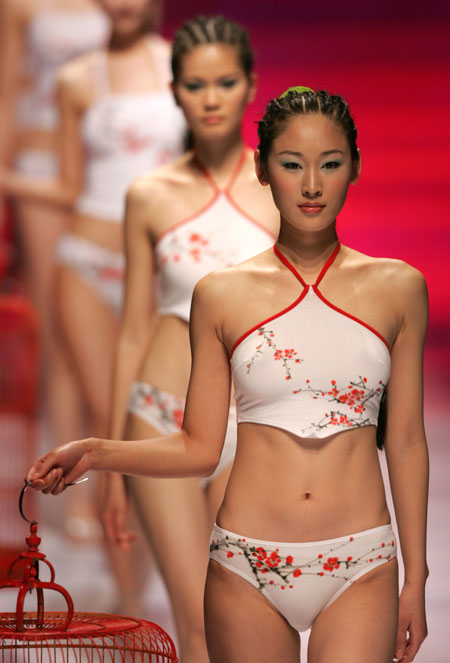 Chinese models present creations for HOSA China Lingerie Fashion Trend Collection 2006-2007 at the 14th China International Fashion Week in Beijing April 1, 2006. [Reuters]