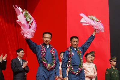 Shenghai (Right) attend the opening ceremony of the Shenzhou VI spacecraft