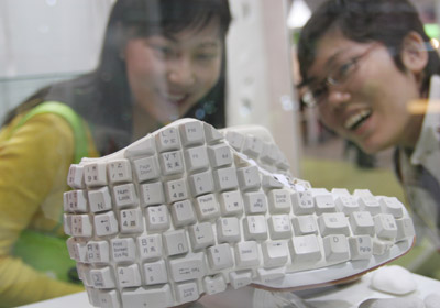 Shoes made of computer keyboards (Newsphoto) Updated: 2006-04-05 15:04