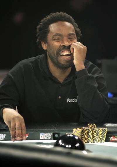 Professional poker player Davidson Matthew of Toronto smiles at the final table during the World Poker Tour Championship at the Bellagio Resort in Las Vegas, Nevada April 25, 2006. Joe Bartholdi of San Diego, who won the $3.7 million first prize outlasted Matthew, who parlayed a seat in a $25 satellite and worked his way to a $1.9 million dollar second place win. [Reuters]