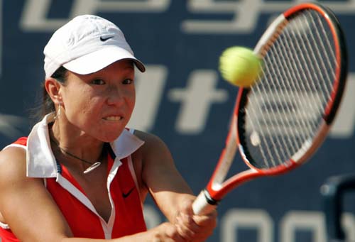 China's Zheng Jie returns to Russia's Nadia Petrova during their match at the German Open tennis tournament in Berlin May 11, 2006.[Reuters]