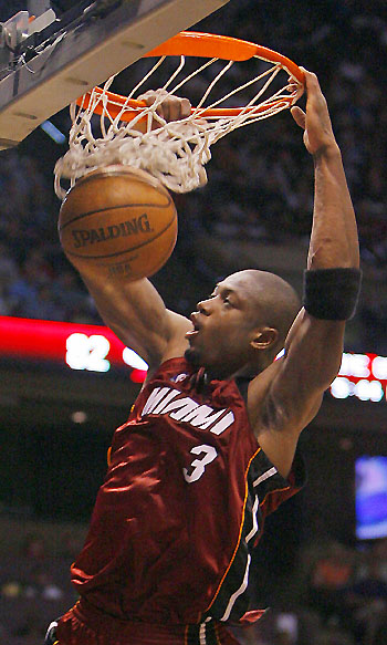 Miami Heat guard Dwyane Wade scores against the New Jersey Nets in the fourth