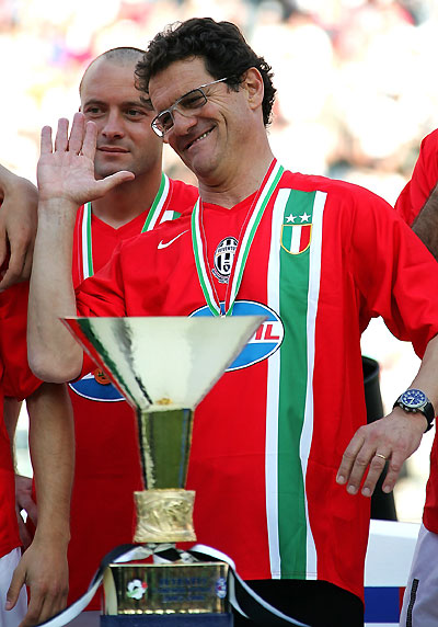Juventus' coach Fabio Capello celebrates after after beating Reggina 2-0 to