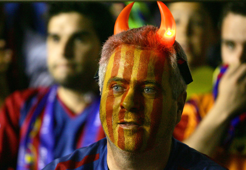 A Barcelona supporter watches the Barcelona versus Arsenal Champions League final soccer match at Mini stadium in Barcelona, Spain May 17, 2006. [Reuters]