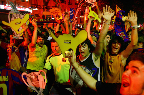 in central Barcelona, Spain, May 17, 2006. Barcelona's won the Champions League