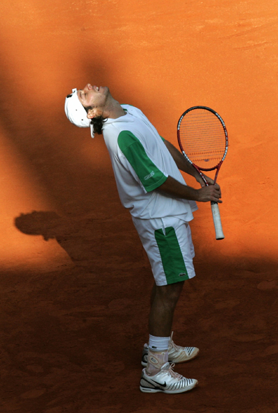 Sebastien Grosjean of France reacts during his match against Jose Acasuso of Argentina at the Hamburg Masters Tennis tournament in Hamburg May 18, 2006. Acasuso won 7-5 6-4. [Reuters]