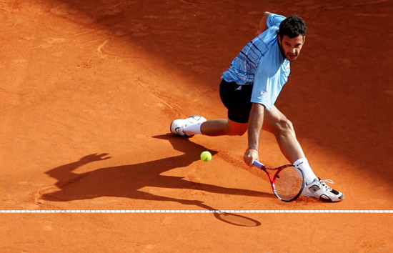 Jose Acasuso of Argentina returns to Sebastien Grosjean of France at the Hamburg Masters Tennis tournament in Hamburg May 18, 2006. Acasuso won the match 7-5 6-4.[Reuters]
