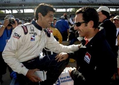 Thiago Medeiros (L) and Helio Castroneves, both of Brazil,