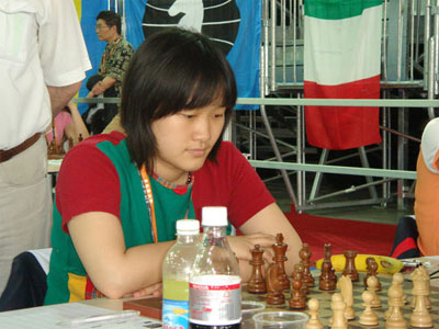 China's woman grandmaster Zhao Xue competes against her French rival in women's third round chess competition in Turin May 23, 2006. [sina.com]