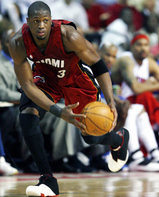 Heat beat Pistons 91-86 in Game 1 (Reuters) Updated: 2006-05-24 11:36  Miami Heat gaurd Dwayne Wade steals the ball and heads up court