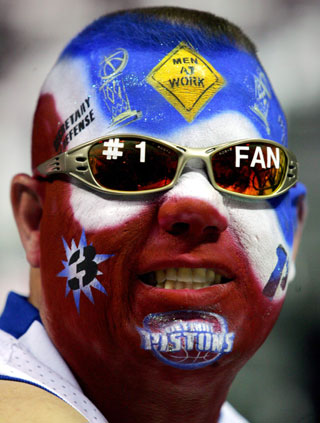 Heat beat Pistons 91-86 in Game 1 (Reuters) Updated: 2006-05-24 11:36  Detroit Pistons fan Richard Hanley has his face painted with