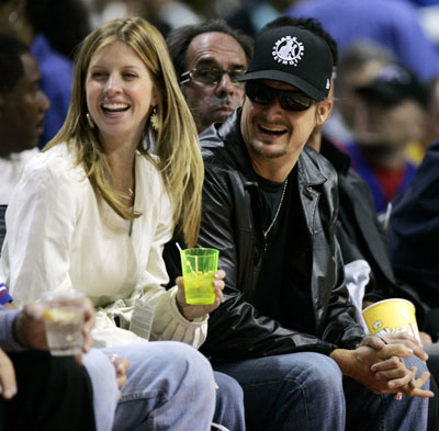 Heat beat Pistons 91-86 in Game 1 (Reuters) Updated: 2006-05-24 11:36  Singer Kid Rock (R) and an unidentified companion sit in the