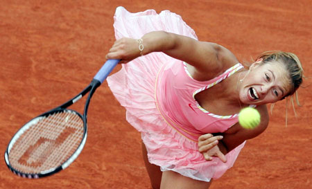 Garros in Paris May 28, 2006. Sharapova won 6-2, 5-7, 7-5.[Reuters]
