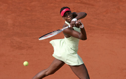 Beauties play during French Open (Reuters) Updated: 2006-05-30 09:50  Venus Williams of the U.S. plays a shot to Austria's Sybille