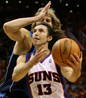 (Reuters) Updated: 2006-05-31 14:15  Phoenix Suns Steve Nash (13) shoots against the defense of