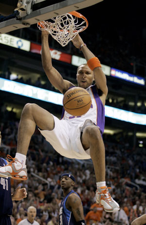 (Reuters) Updated: 2006-05-31 14:15  Phoenix Suns Shawn Marion dunks the ball as Dallas Mavericks