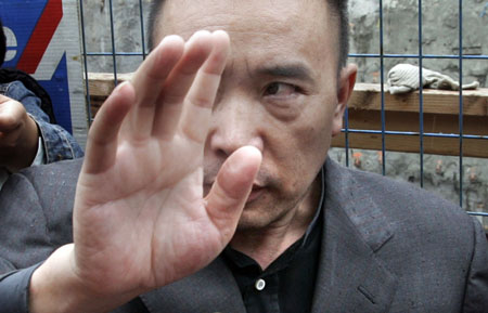 Smuggling kingpin Lai Changxing, one of China's most wanted fugitives, gestures while talking to media outside his residence in Vancouver, British Columbia June 1, 2006. A Canadian judge ruled on Thursday to delay the planned deportation of Lai.[Reuters]