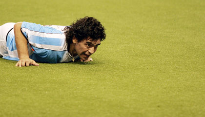 Soccer legend Maradona plays Indoor World Cup Updated: 2006-06-03 10:31  Argentinian soccer legend Diego Maradona lies on the pitch during