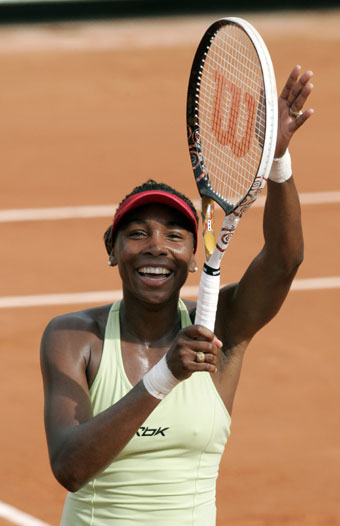 Tennis stars play French Open (Reuters) Updated: 2006-06-05 14:02  Venus Williams of the U.S celebrates winning her match against