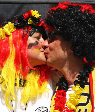 Two German soccer fans kiss before the World Cup 2006 opening ceremony in Munich. [Reuters]