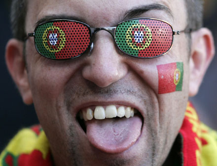 A Portugal fan waits in the stands before their Group D World Cup 2006 soccer match against Angola in Cologne June 11, 2006.[Reuters]
